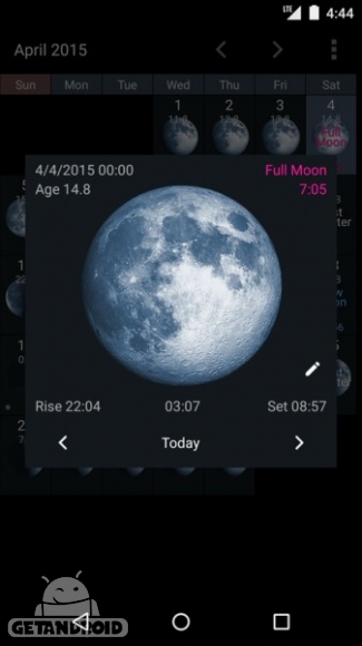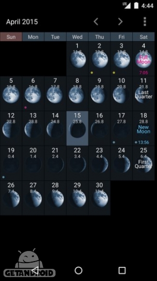 ✤ هنگامی که شما یک تاریخ را روی تقویم لمس کنید، تصویر ماه بزرگ در صفحه باز شونده نمایش داده می شود.