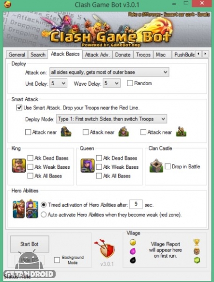 برخی از ویژگی های برنامه Clash Game Bot اندروید :