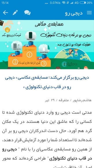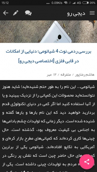در کنار آیکون قلم تغییر اندازه فونت نوشته ها، آیکونی وجود دارد که با لمس آن نیز می توانید نظرات هر مطلب را مشاهده کنید و در صورتی که مایل به ثبت نظر خود باشید، با لمس آیکون قلم صورتی رنگ دیدگاه خود را با دیگران به اشتراک بگذارید..