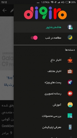 ویژگی های اپلیکیشن اندرویدی دیجی رو :
