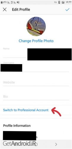 حال گزینه ی switch to professional account را انتخاب میکنیم.