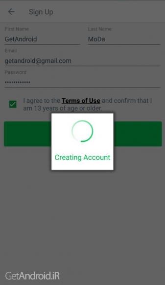 2- حالا شما باید مطابق شکل ، اطلاعات خودتون رو وارد کنید تا جلوی هر فیلد تیک سبز رنگ هم بیاد .