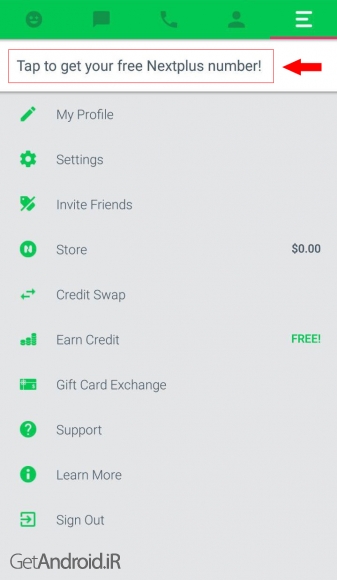 5- بعدش هم مطابق شکل روی گزینه “Tap to get your free Nextplus number” کلیک کنید.